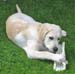 Quin's Quest Dear Friends I just love going out and meeting new people but I do get a bit bored waiting about. In the shops I have to sit quietly whilst the shopping is packed. All I want to do is help! I had a great time the other day tearing up the cardboard box that used to be my bed. Well, it was getting way too small for me anyhow. Then I had some more food delivered I was allowed to have the old bag. Yippee! I climbed in and chased round the kitchen biting and licking out the inside. I don't know why they laughed. I don't think they feed me enough. I went to see my friend, Guide puppy Olma. I am almost the same size as her even though I am three months younger. We had a great time running all over the garden and knocking over the plant pots. Olma's Dad had put some plastic bottles with beer in the bushes to attract the snails. I love playing with plastic bottles but the beer was best. Shame about the bushes!
