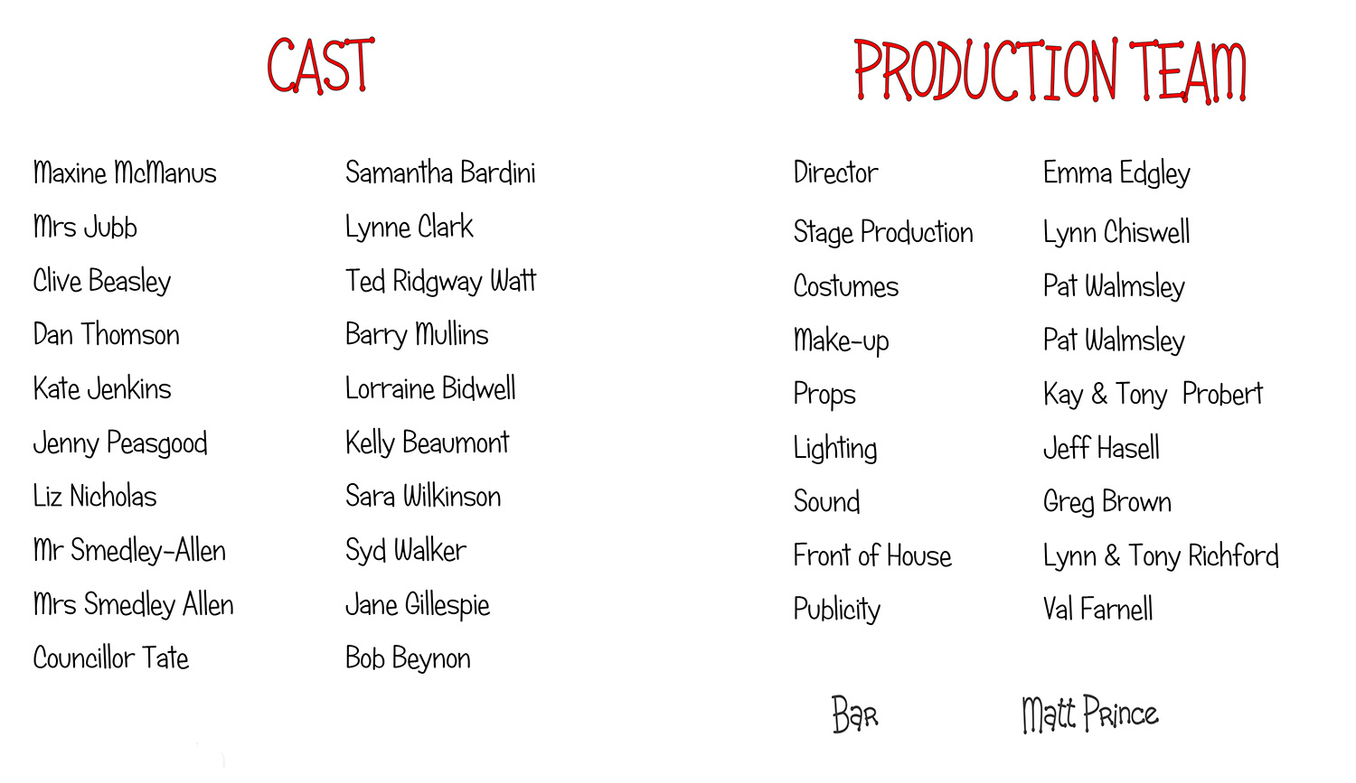 The next production will be Robin Hood and his Merry Men by Limelightscripts.co.uk, on 16th, 17th & 18th Nov 2017.